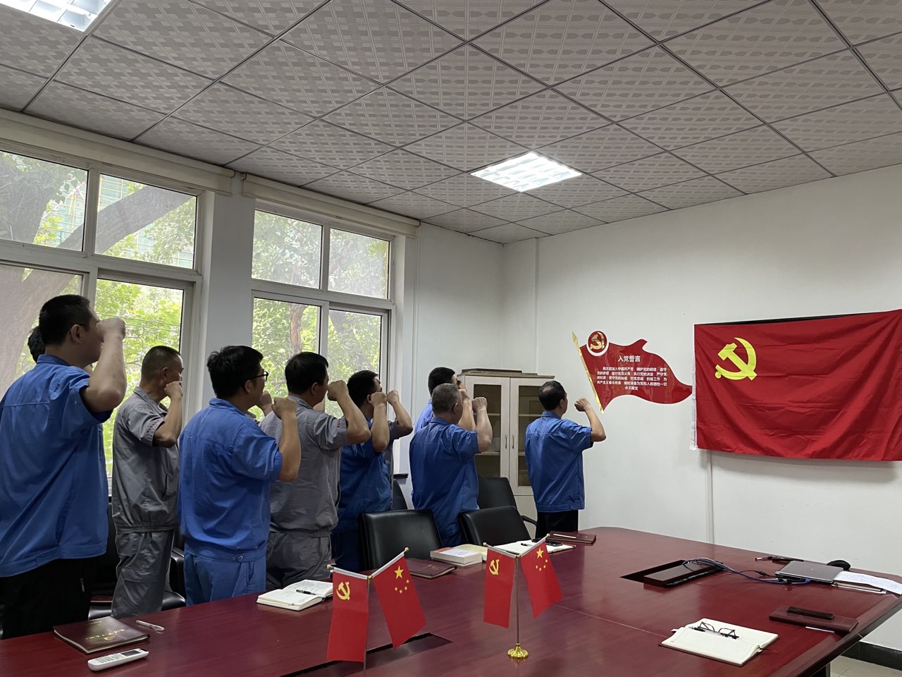 緊接著,公司全體黨員面向黨旗,在黨總支書記的帶領(lǐng)下,高舉右拳,莊嚴(yán)宣誓:“我志愿加入中國共產(chǎn)黨……”,在重溫入黨誓詞中,回憶入黨初心,強化使命擔(dān)當(dāng),凝聚力量,振奮人心,進(jìn)一步激發(fā)了廣大黨員干部干事創(chuàng)業(yè)的工作熱情及為實現(xiàn)中華民族偉大復(fù)興而努力奮斗的信心和決心。